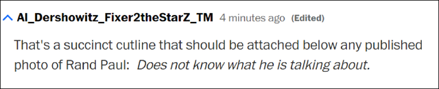 “有这么一个简洁的图片说明可以放在兰德·保罗的公开照片下头:不知道他在说什么。”