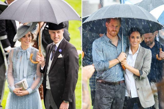 哈里曾经说,下雨也不怕,因为我有妻子,梅根给哈里撑伞的样子,宛如贤妻良母;身为宠妻狂魔的威廉,只要他在,就会像个骑士一样给凯特撑伞;雨下的这两对小夫妻还会眉目传情,羡煞旁人。