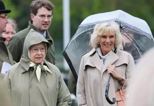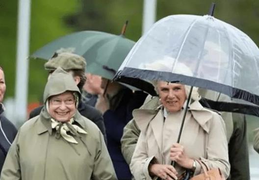 对这种透明的雨伞,卡米拉是情有独钟,但是为什么她只顾自己呢?旁边的可是你的婆婆啊!女王心里说:“哼,你不给朕打伞,朕有帽子”!