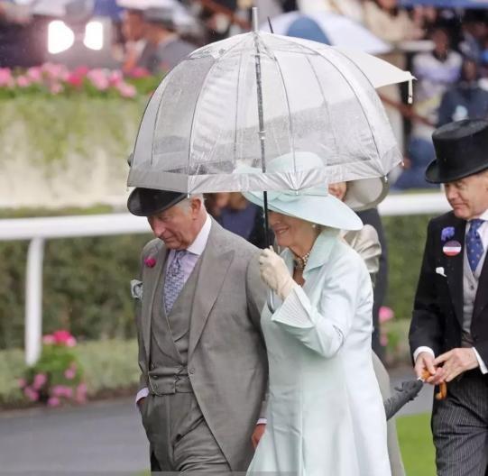 和老王子查尔斯一起的时候,卡米拉还是一个人独享小伞,查尔斯爱了她51年,都没能让她给自己打伞,不知道老王子作何感想呢?