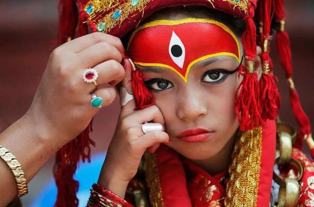 尼泊尔有很多女神庙,里面住着“活女神”库玛丽。