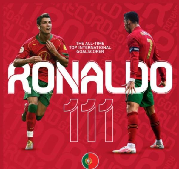 面对他180场国家队比赛打进111球的成就,FIFA主席因凡蒂诺也把C罗比作国家英雄:“这一成就,是对你近20年保持最高水平为国而战的回报,这体现了你足球生涯中的巨大投入和奉献,以及你对足球不可思议的热情。你的足球技艺和不断前进的动力,配得上全世界的称赞和钦佩……”