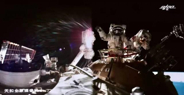 聂海胜、刘伯明将身上的摄像机对准彼此