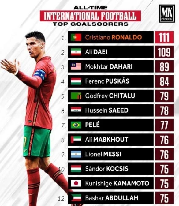 111球,C罗超越了曾占据第一的阿里·代伊2球,领先排名第七的贝利34球,领先排名第9的梅西35球。20年如一日保持最高水平为国而战,C罗确实属于伟大的行列。正如葡萄牙主教练桑托斯表示的那样,“C罗就是这样,他一直都在这么做。伟大的球员就是如此。”