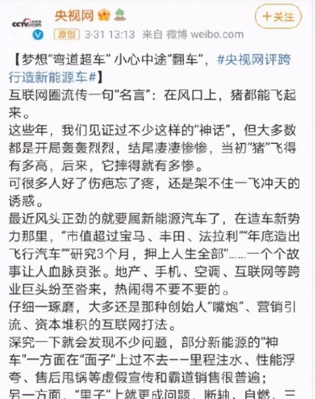但即便如此,小米造车也不是人人看好。早在3月小米宣布造车之际,央视网不点名直接泼了一盆冷水,明眼人一眼都能看出说的是小米,点不点名差别并不大。