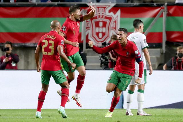 2021年9月1日,C罗在进球后庆祝。新华社里斯本分社(葡萄牙)发