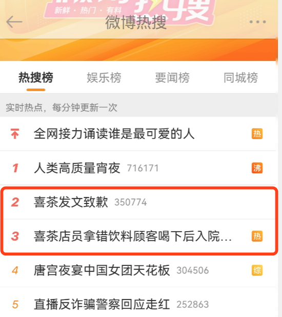 2.《喜茶变洗茶顾客喝下不明液体,入院洗胃,喜茶致歉冲上热搜,还有这些网红奶茶近期也翻车》仅供读者参考,本网站未对该内容进行证实,对其原创性、真实性、完整性、及时性不作任何保证。