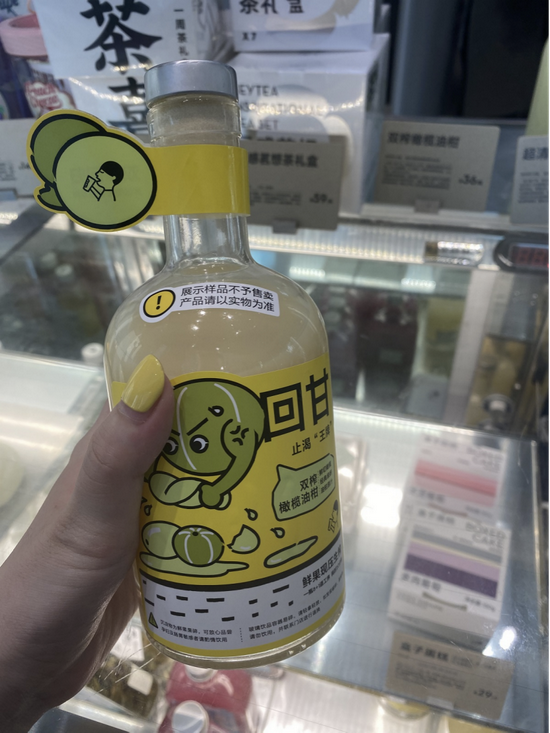 大约在17时左右,陈女士一边观影,一边打开那瓶双炸杨桃油柑,当她毫无防备用吸管喝了一口后,一股厚重的油脂感充满了整个口腔,因为是第一次购买该产品,陈女士一开始以为它可能就是“油油”的,她又用吸管搅拌了一下,并用吸管警惕地又吸了一口,结果还是一样的口感,陈女士当即将嘴里剩余的“饮料”吐回吸管,在借着影院微弱的灯光查看产品后,陈女士发现瓶身上竟然贴着“样品”字样。