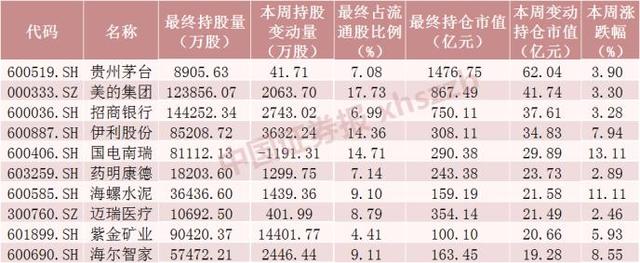 本周北向资金持仓市值增加额前十的股票中,除国电南瑞被北向资金减仓1191.31万股外,其他股票均被北向资金加仓。其中,对美的集团、招商银行、伊利股份、药明康德、海螺水泥、紫金矿业、海尔智家的持股增加数超1000万股。可以看出,本周北向资金大举加仓多只白马股。