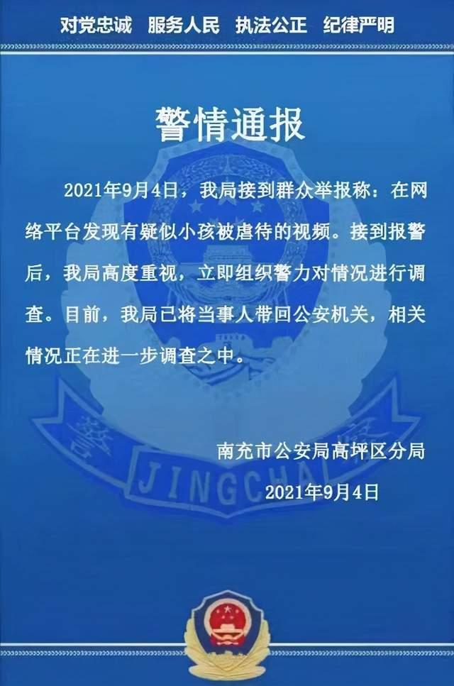 视频一经传播便引起警方关注,当晚,南充市公安局高坪区分局@高坪公安通报称,接到报警后立即组织警力对情况进行调查,目前已经将当事人带回公安机关,相关情况正在进一步调查之中。