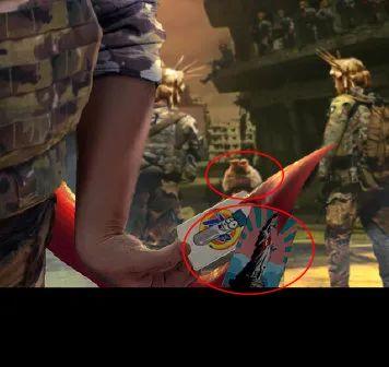 我们还可以看到,角落里的美军头上都戴着自由女神的王冠,散发金色光芒,然而手上却沾满了鲜血。