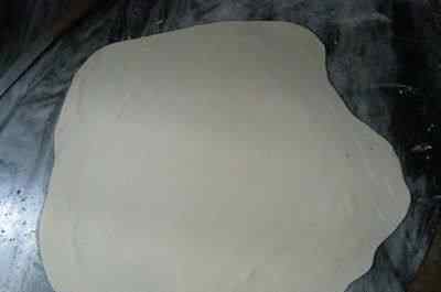 9 把面团擀开擀薄。