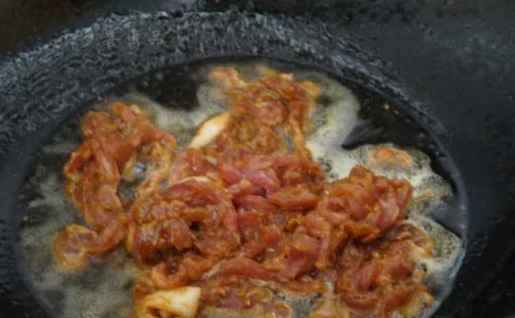 4 热油锅下肉丝煸炒,炒熟后起锅盛出