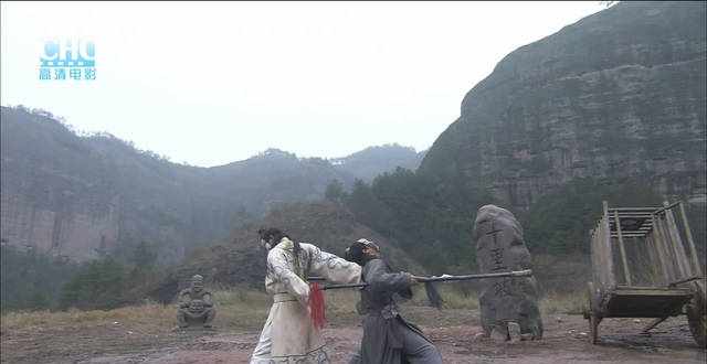 镖头王振威正在练武,不过这道具看上去真的是栩栩如生,如假包换呀。(小编说的是反话)对于十年前的电影,实在不能要求太高。