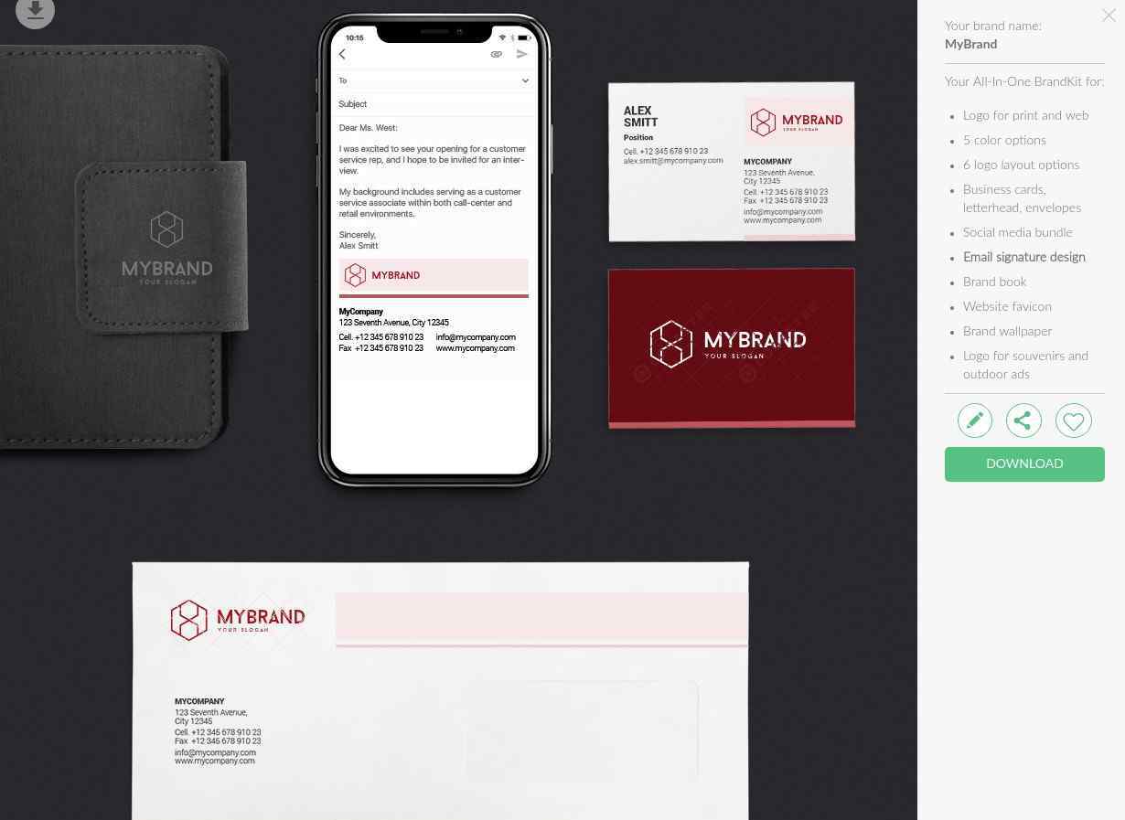 我们会让你免费创建和下载小尺寸的logo,还会为你创建各种logo和品牌产品设计,让你在你的网站(以及其他网站)上正确理解你需要的logo的外观和感觉。如果你对此满意,你可以购买不同尺寸的产品,如果你不满意,你只需要免费再创造一个!