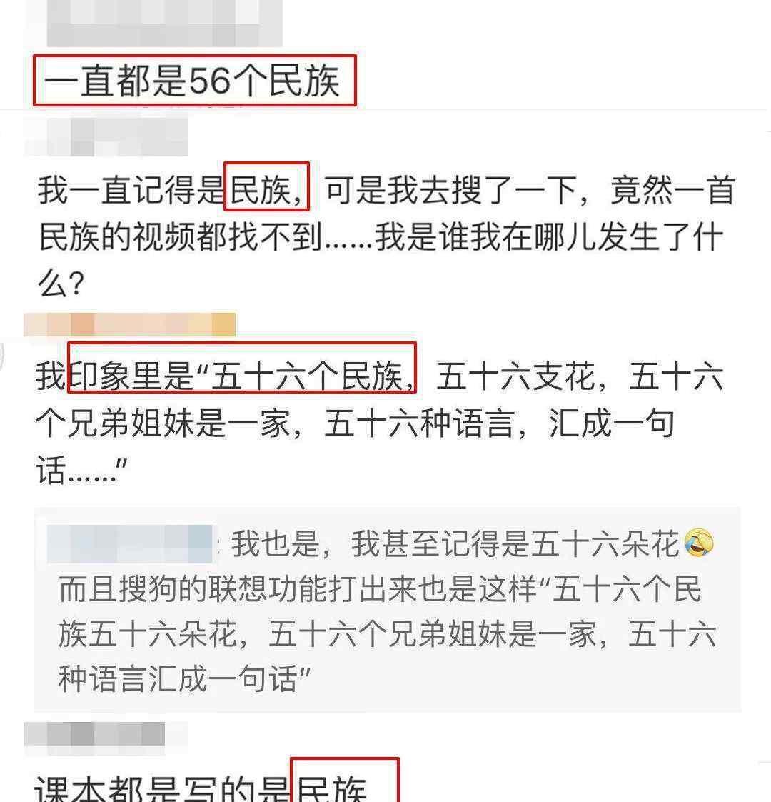 很多网友看到原曲后也听了一遍。歌词从头到尾没有出现“五十六个民族”。