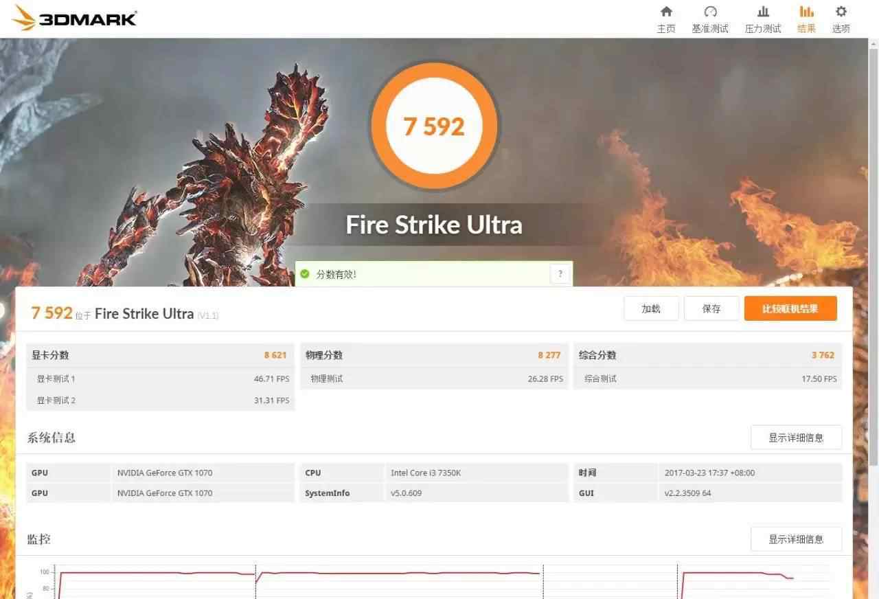 主频率i3-7350K为5.0GHz的3DMark获得了8441(时间间谍)、7592(火击超)和12087(火击极限)的分数..可以看出,改进有一定效果,但并不大,在针对DX12的Time Spy测试中有较大改进。我们知道DX12游戏将是未来的世界,所以这次推广值得庆祝。