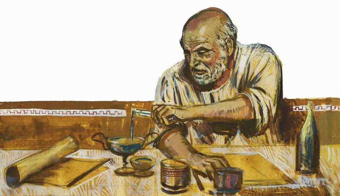 阿基米德晚年,他的祖国和罗马发生了战争。当他的城市被洗劫时,阿基米德也致力于研究他在沙子上画的几何图形。残暴的罗马士兵刺伤了75岁的老人,这位伟大的科学家扑向被鲜血染红的几何图形...
