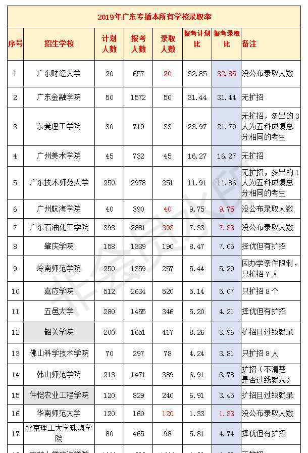 2.韶关大学、仲恺农业工程大学,这几所学校已经正式宣布扩大招生,过线就录。表格里也包含了很多信息,可以自己找找。
