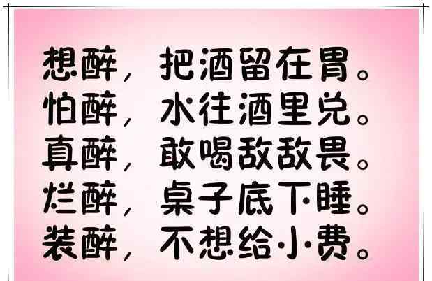 2.《最经典幽默喝酒顺口溜 喝酒顺口溜:幽默有看头,谁编的,太有才了!》仅供读者参考,本网站未对该内容进行证实,对其原创性、真实性、完整性、及时性不作任何保证。