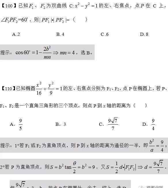 Y05。椭圆双曲线的焦点三角形