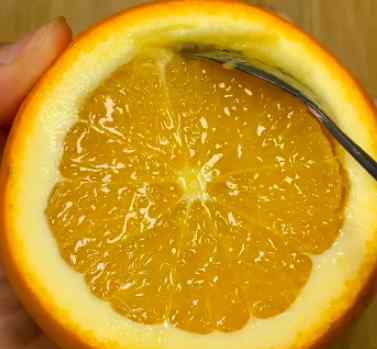 橙子切好后,里面的果肉挖出来,就没有果肉了。当我们挖果肉的时候,不可避免的会留下一股橙汁,需要倒出清洗。