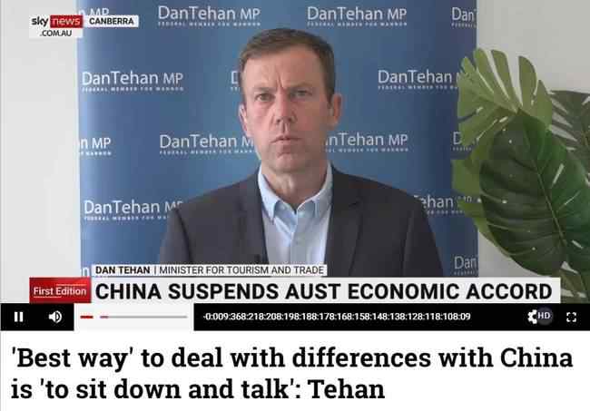 然而,时间过去还不到24小时,澳大利亚贸易部长丹·特汉就表示,由于中澳之间经贸往来十分重要,希望中澳经济关系在经济对话无限期暂停的情况下还可以继续下去。