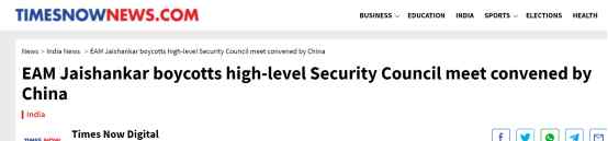 “印度外长苏杰生抵制中国召集的安理会高级别会议”,印度媒体TimesNow新闻网8日以此为题发文宣称,印方由外交秘书什林拉代表出席,“由于安理会其他14个成员国的部长级官员出席了此次视频会议,因此印度外长苏杰生的缺席格外引人注目。”