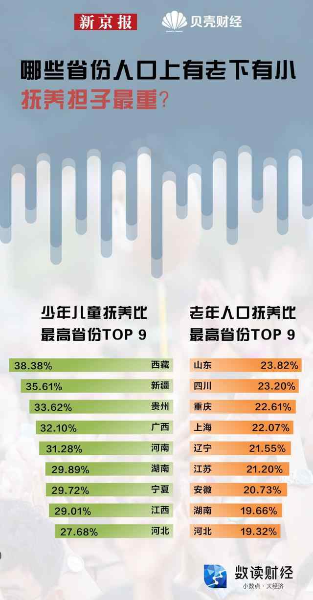 新京报贝壳财经记者梳理全国31省份生育、人口结构数据,看看哪些省份出生率最高?哪些省份“上有老下有小”,负担最重?