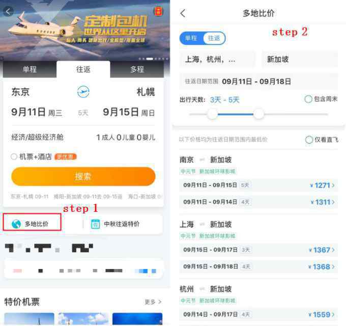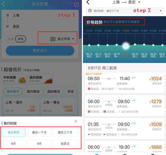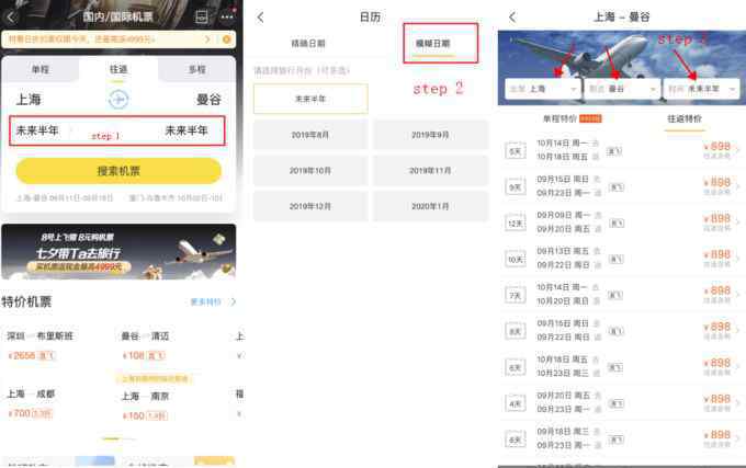 携程的特别功能包括:支持假日搜索,并优先考虑少留和低价。