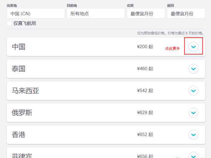 同时还可以查询多个出发地点和目的地,最多3个城市/国家,支持假期查询。