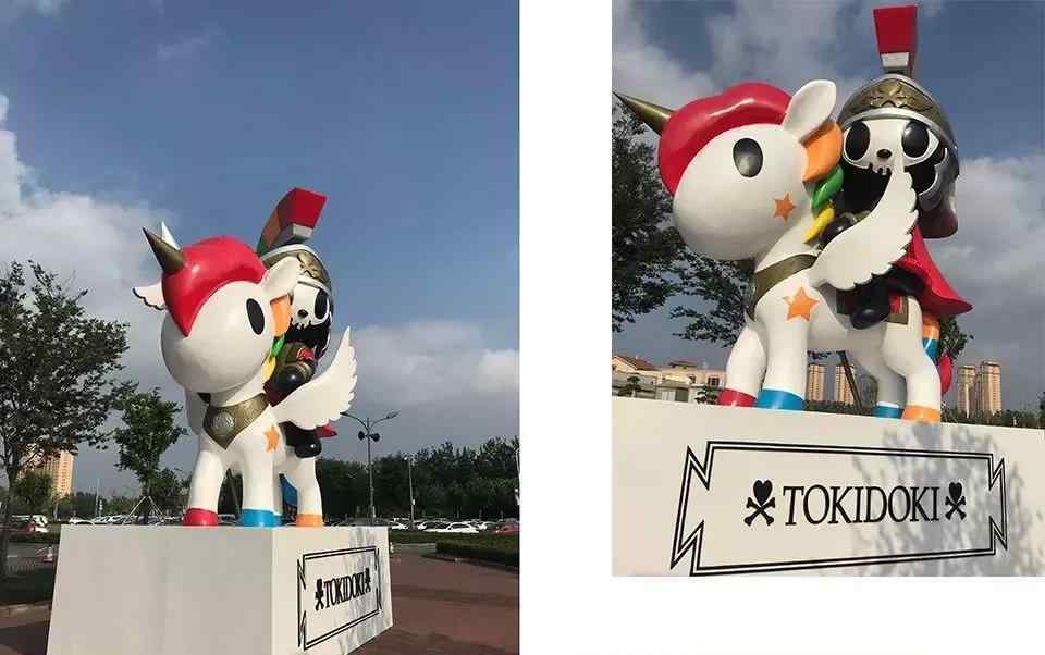 Tokidoki的创始人Simone专门为这次巡回展览为佛罗伦萨小镇打造了一个定制的模型。Tokidoki骷髅家族成员化身为“独角兽骑士”,位于佛罗伦萨城1号门入口处,作为游客的打卡坐标。