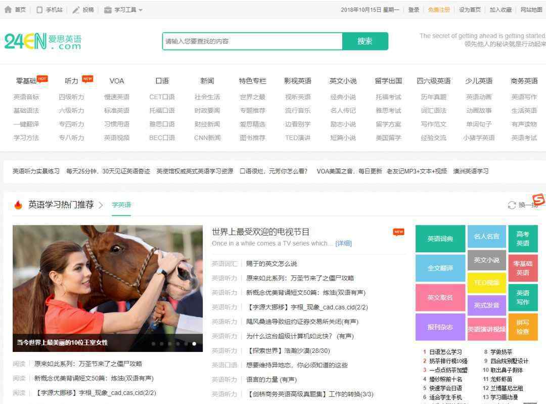 初看被认为与文字有关的《海词》,进入后才能知道。还有“生活英语”、“娱乐时尚”、“视听英语”等等。物质丰富度中等。