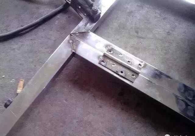 3.将铁片先放入带槽的短方管中,钓鱼平台框架可以焊接。