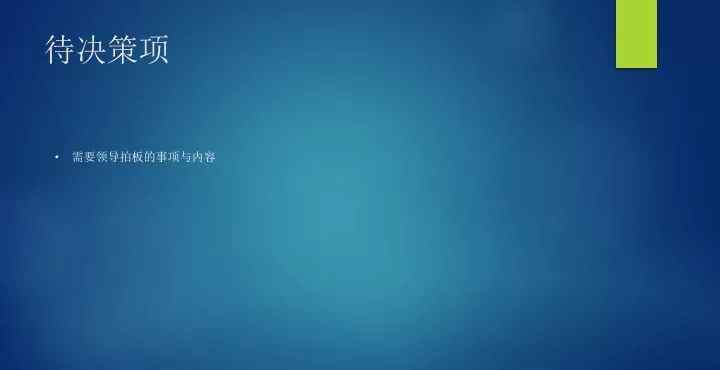 问题有待解决。所以提出问题的时候要附上预期的解决方案,甚至是已经解决的进展。需要决定的事项是希望领导能帮你支持的内容。