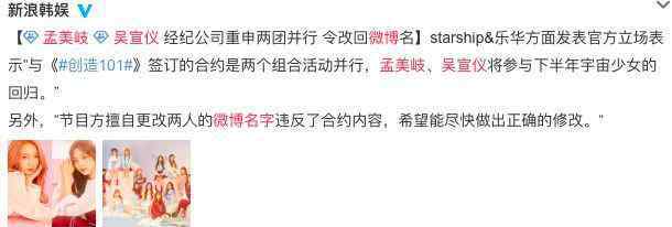 美琪和萱姨也出现了微博简介和名字之争,她们的名字被节目组强行改成了火箭少女101+。结果乐华和星舰退出,称鹅厂擅自更改微博名称,违反合同。
