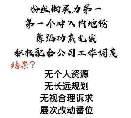 更生气的是镜头少,没有个人资源,没有长远规划,反复改动。告诉我粉丝愿不愿意。