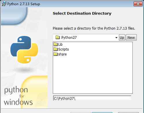 10.然后在那个文件夹里输入C下面安装的默认python文件。不需要考虑C占用系统的性能问题。如果有强迫症的用户可以改一下,点击下一步。
