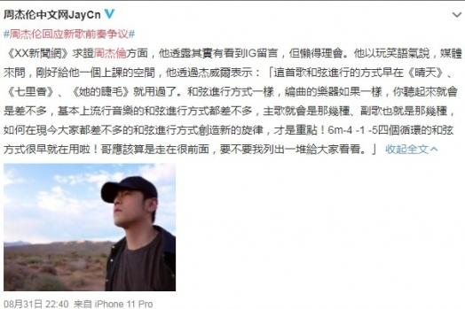 针对这件事情,8月31日,周杰伦也做出了回应。其实他早就看到了关于他抄袭的新闻,只是懒得理会。既然大家对这件事情这么感兴趣,那他也正好趁此机会给大家上上课。顺便来科普一下,编曲这件事情。