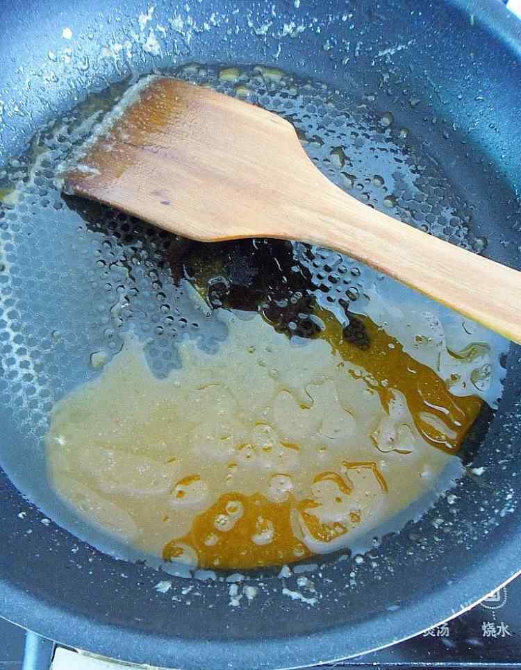 8 用铲子不停搅拌至白糖熔化。