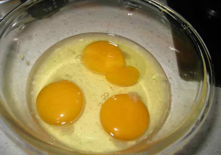 4 现在做菜了,碗中打入鸡蛋三枚;