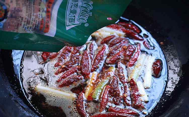 8 倒入麻辣香锅调料。
