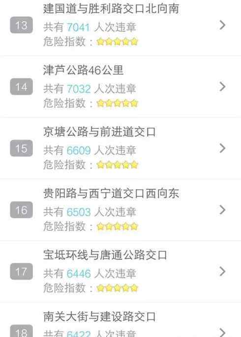 天津最容易违规的100个路段