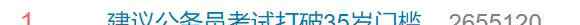 2021年全国两会正在召开,会上建议公务员考试打破35岁门槛引起热议,并冲上微博热搜榜第一。
