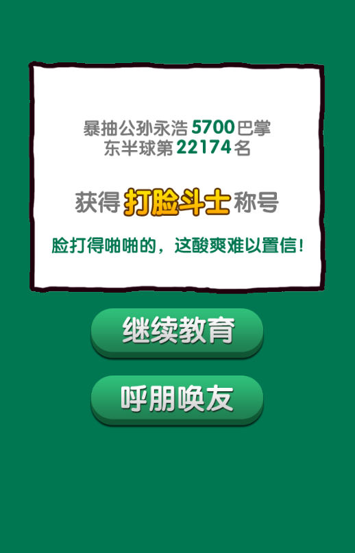 30秒内,将你的怒气尽情的释放出来,疯狂的点击屏幕抽巴掌,看看能抽多少下。快来试试手速吧!