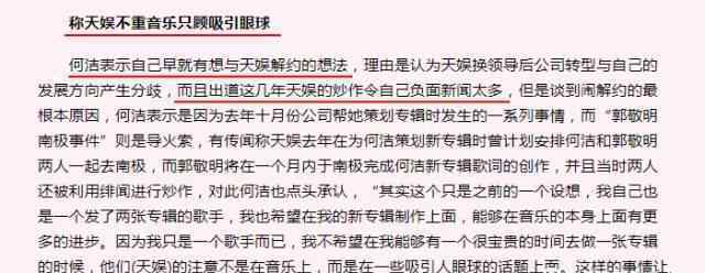 2009年,何洁怀着一种怨恨的心情想和田玉娥解约,说田玉娥不关注音乐,只吸引眼球。而且,田玉娥近年来的炒作让他有了太多的负面新闻。她还透露了田玉娥正在计划新专辑的消息。她原本打算安排她和京M .郭一起去南极,利用他们的绯闻来炒作,最终引起了她的反感。
