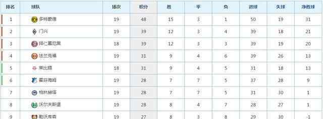 德甲:德甲前霸主拜仁,在球队主力老了,受伤病影响的情况下滑落到第三名。瓜迪奥拉离开拜仁后,拜仁在德甲的统治力逐渐下降。多特蒙德是领头羊。多特蒙德本赛季只经历过一次失利,在进攻火力上也鄙视德甲所有俱乐部。目前多特蒙德领先第二名明梦达9分。