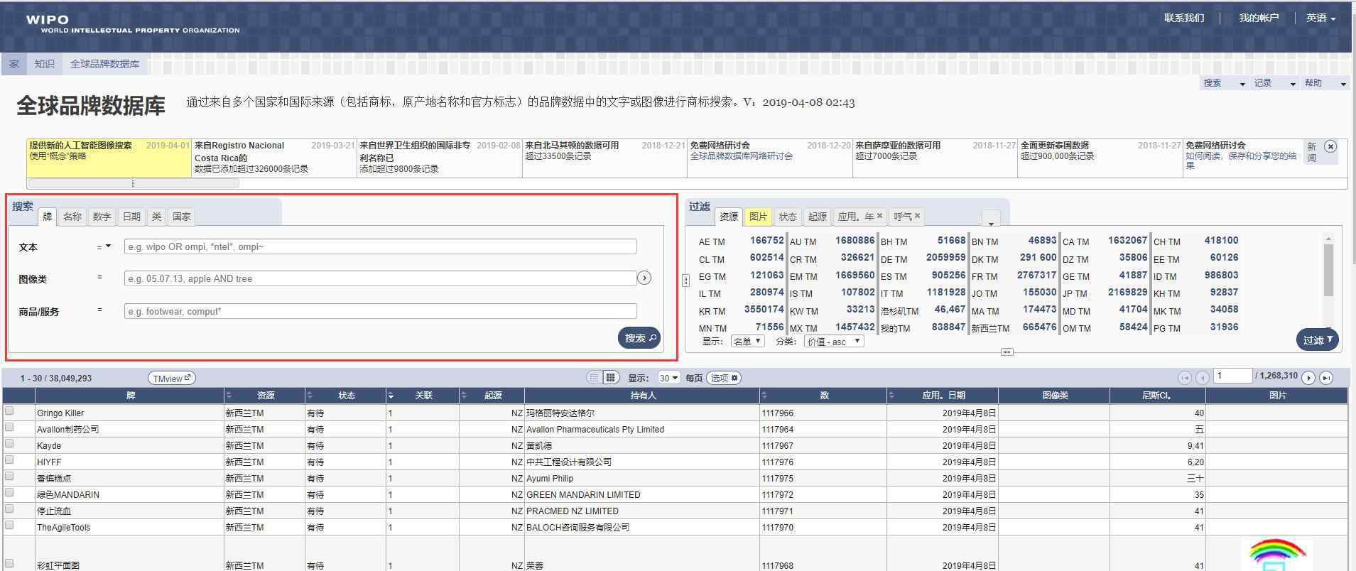 40个数据库中的3500多万个商标(包括通过马德里系统注册的商标)