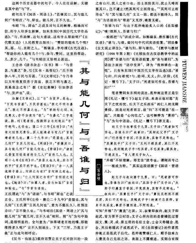 2.《吾谁与归 富金壁:再说“吾谁与归”——评郑珮聪《“吾谁与归”新解》》仅供读者参考,本网站未对该内容进行证实,对其原创性、真实性、完整性、及时性不作任何保证。