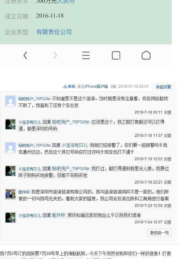 被忽悠的不只是安老师。记者通过互联网搜索发现,许多人陷入了旅游网的预订陷阱。在百度的《旅行吧之旅》中,网友在今年7月10日发布了被骗的完整过程,警告大众旅游网是骗子。现在网站打不开了,手机被标为诈骗手机。以后小心别被骗。截至7月24日上午最后一个帖子,反映旅游网骗了票款的帖子多达40条,部分被骗者表示已向公安机关报案。记者在贴吧看到,有网友怀疑深圳旅游旅游有限公司是旅游旅游网,并展示了该公司详细信息的截图。然而,一些自称是该公司的员工后来澄清说,他们与涉嫌欺诈的旅游网络无关。